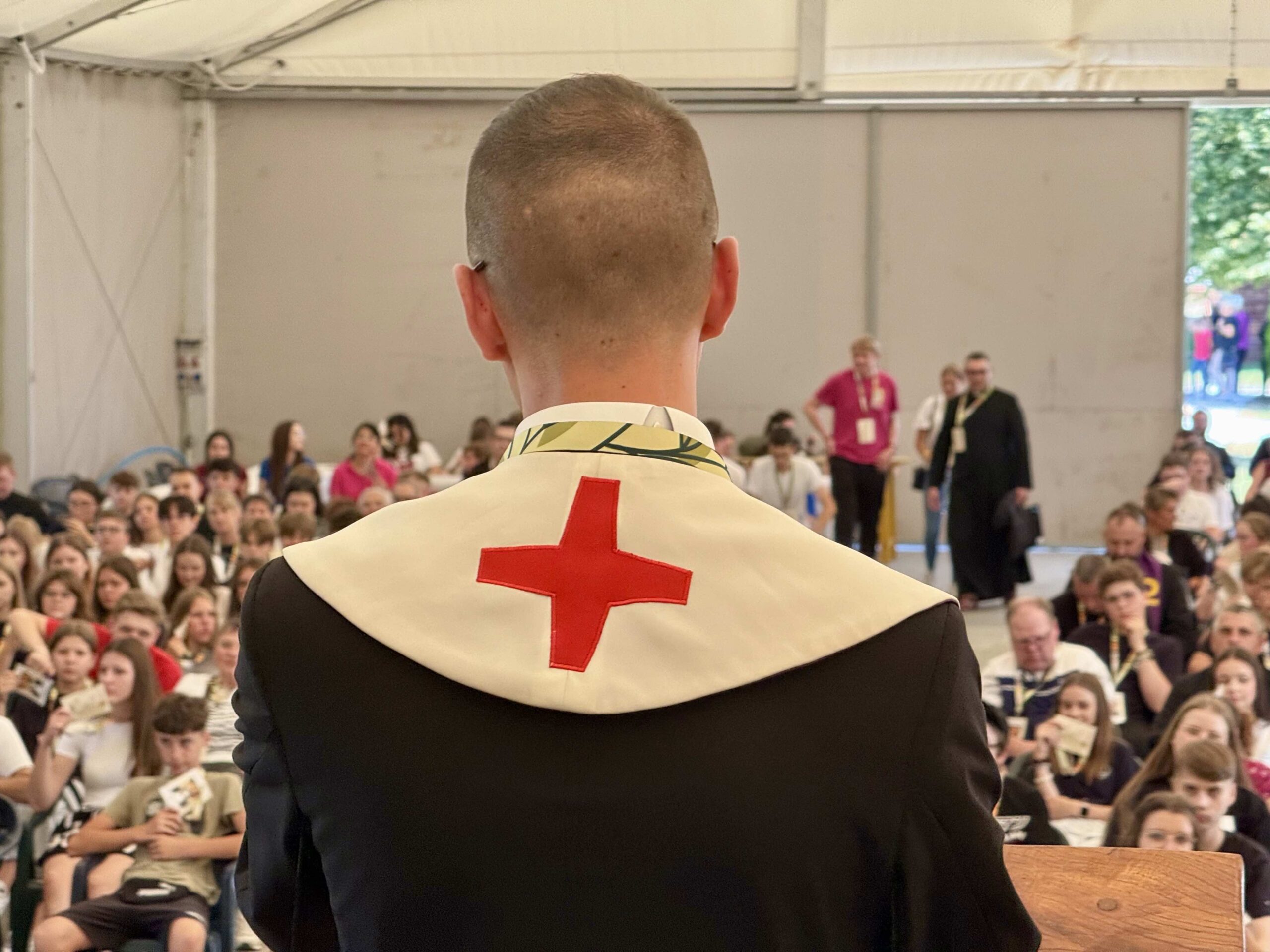 Następnie pielgrzymi udali się do Zabawy, gdzie w namiocie przy kościele misjonarz ks. Mateusz Szostak wygłosił konferencję o nadziei.