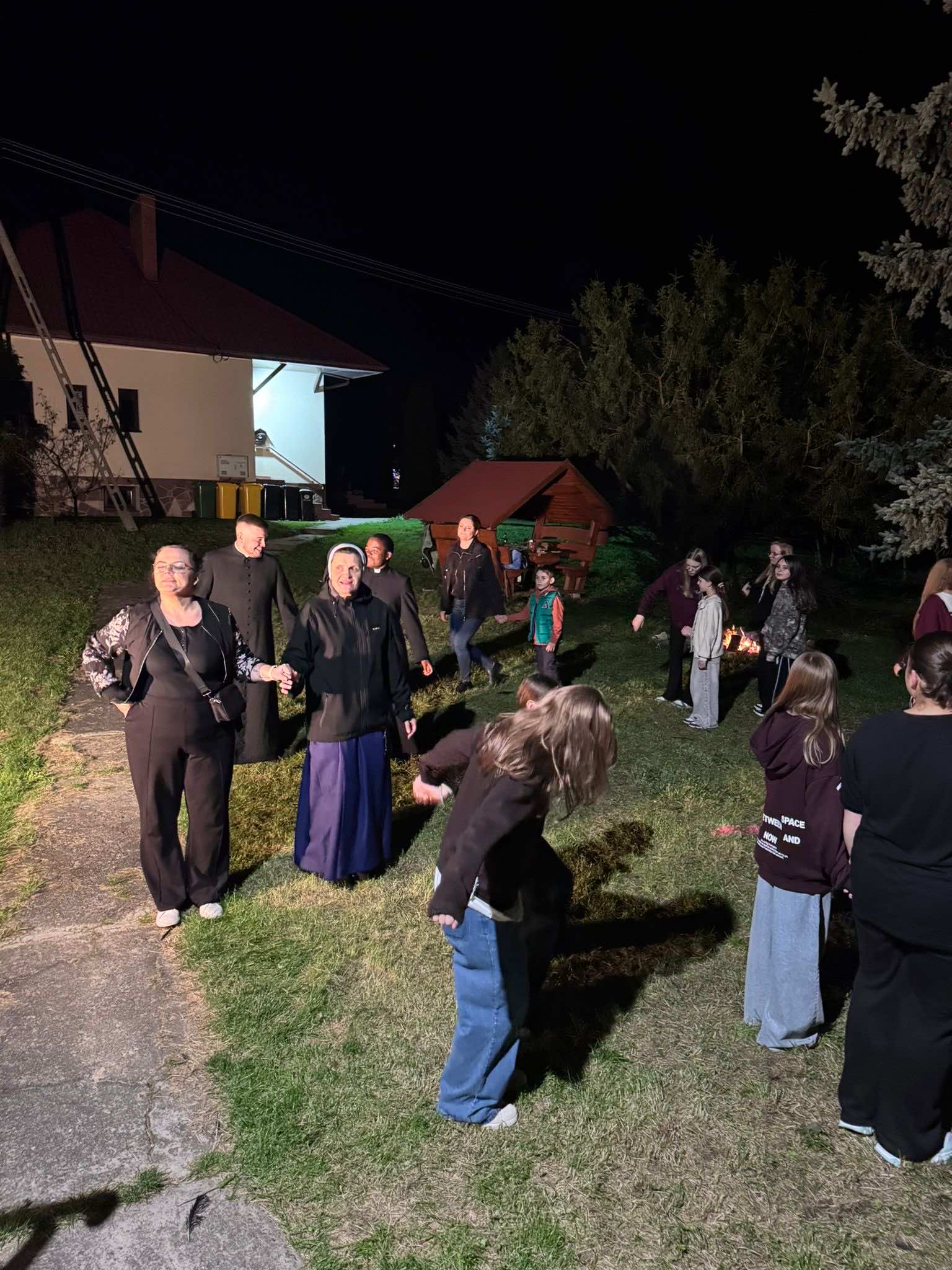 Po Eucharystii uczestnicy wraz z księdzem Proboszczem spotkali się na ognisku integracyjnym. Oprócz tradycyjnych kiełbasek czekały na wszystkich tańce i zabawy animowane przez opiekunów grup, które stały się okazją do bliższego poznania i umocnienia więzi między najmłodszymi parafianami.