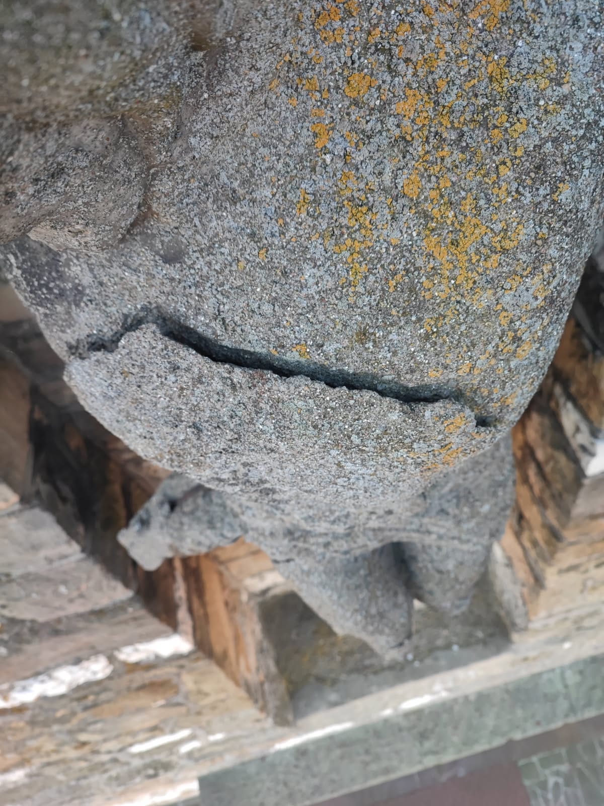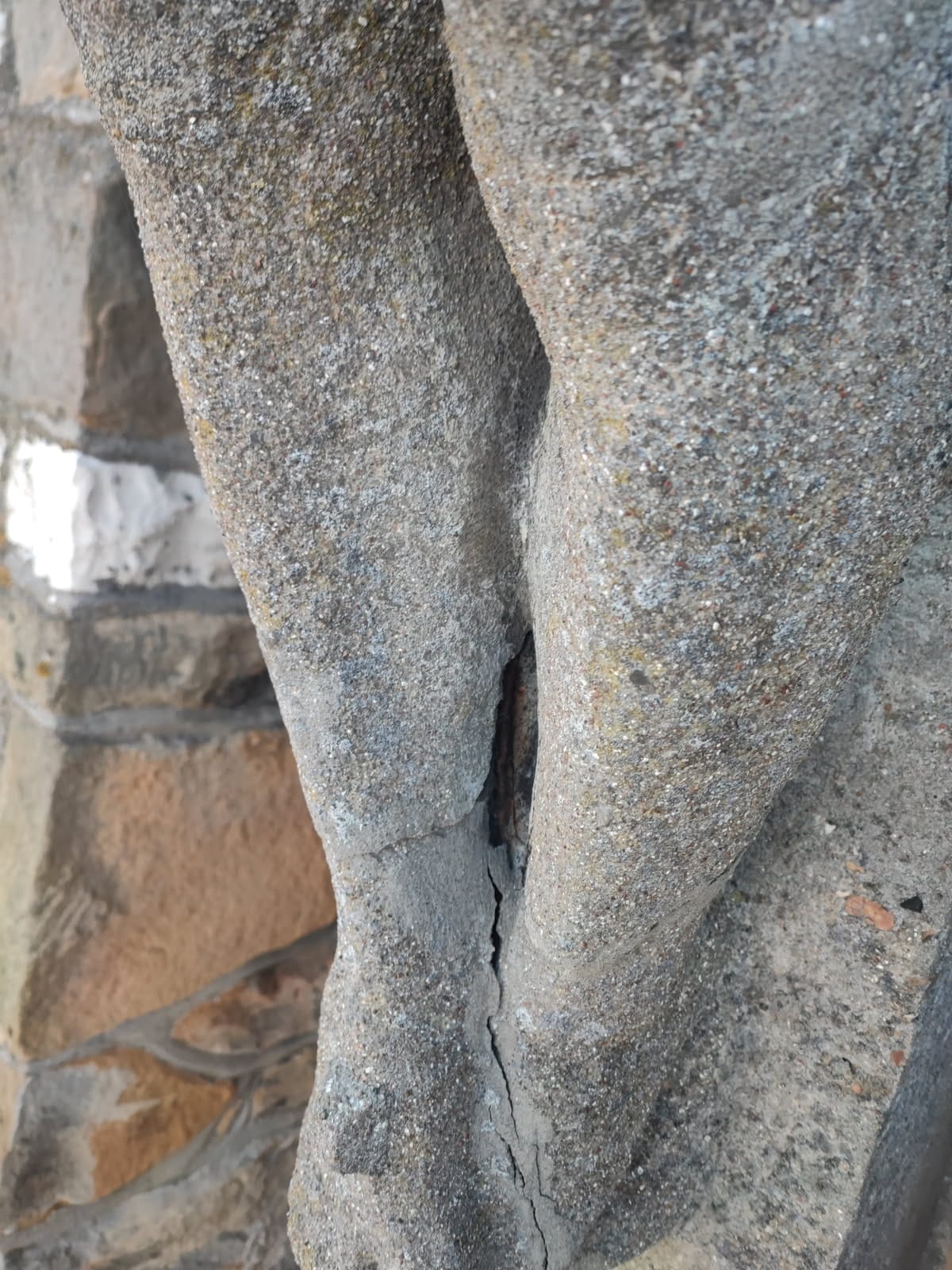 W związku z powyższym, niezwłocznie dokonano tymczasowego zabezpieczenia krzyża, mającego na celu ustabilizowanie konstrukcji i zapobieżenie dalszemu pogłębianiu się uszkodzeń.